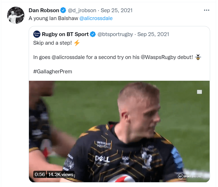 You know what though, so have Wasps. Ali Crossdale had an unbelievable first start against Bristol, with his second try a demonstration of what a gifted player he is. It’s interesting, because I rang my brother after the game, saying that he really reminded me of Iain Balshaw with ball in hand and I noted that our very own Dan Robson made a similar comparison after the game (see below). Like Balshaw, I expect there may well be moments of frustration alongside the moments of brilliance, but I really think Wasps have got an X factor player there. Once the Coventry men are able to field anything like their first choice backline in front of him, with the grounds hardening, it is going to be a lot of fun watching him in action.